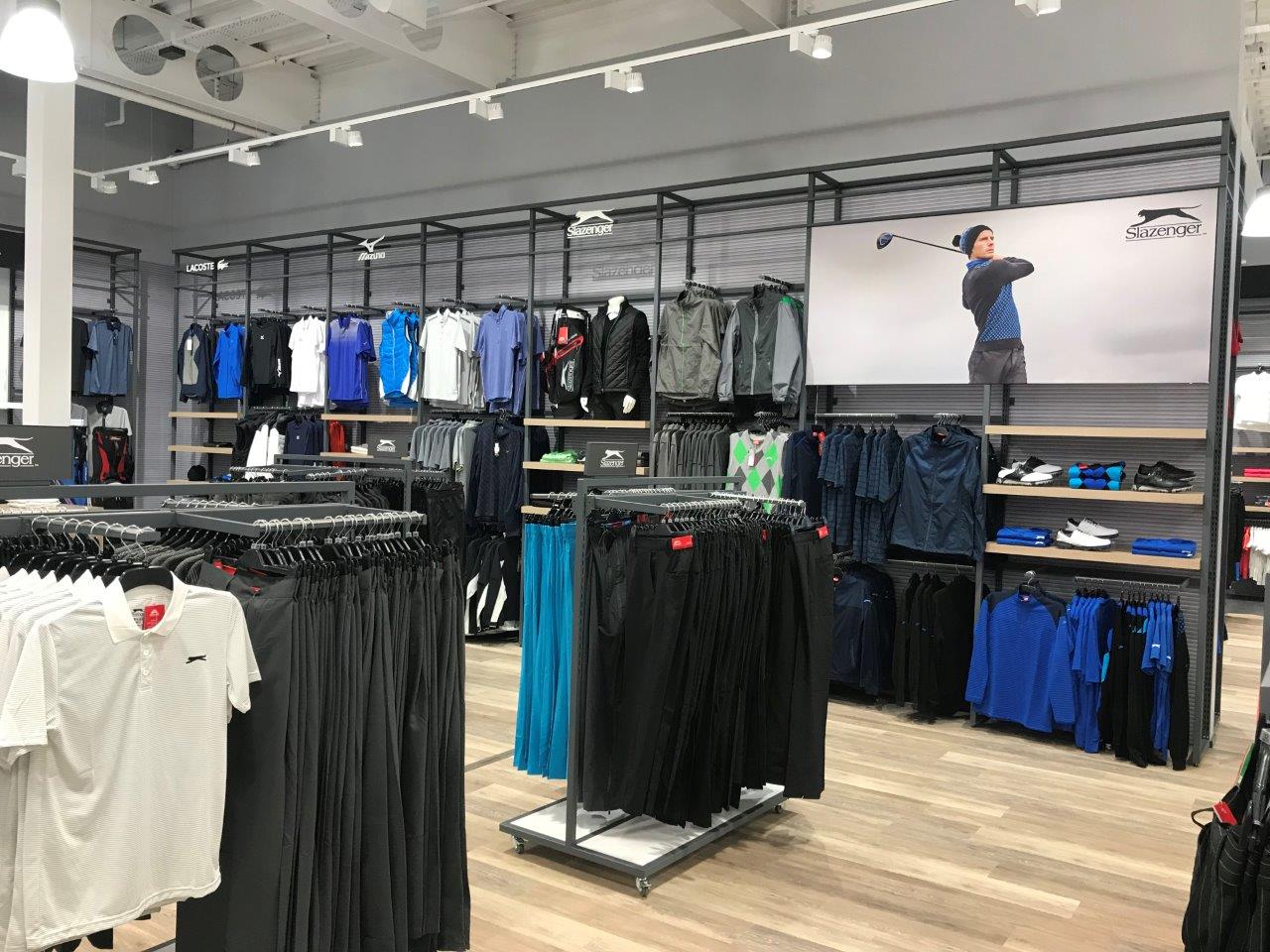 SEV worked with the design and installation contractor on all aspects of this project from the mid-floor clothing displays to the putting green, golf club displays, plinths, counter and bespoke wall display system.